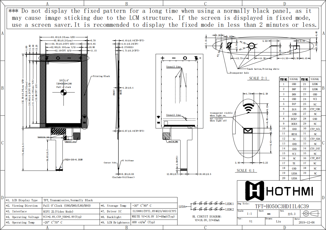 5.0 inch TFT | HD 720*1280 | IPS | MIPI interface| TFT-H050C3HDIIL4C39