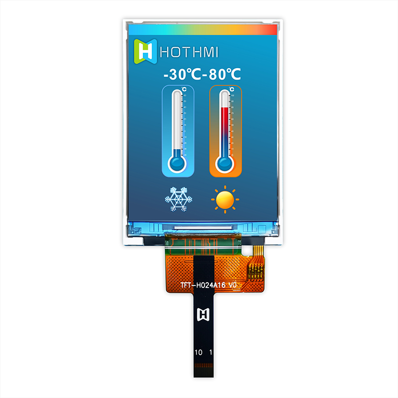 TFT-H024A16QVIST6N10 is a miniature TFT display with portrait mode, if you want to use a touch screen, please contact us for more technical support. This 240x320 TFT LCD has a brightness of 600 cd/m2 (typ.) and can operate in temperatures from -30°C to 80°C; its storage temperature range is from -30°C to 80°C.