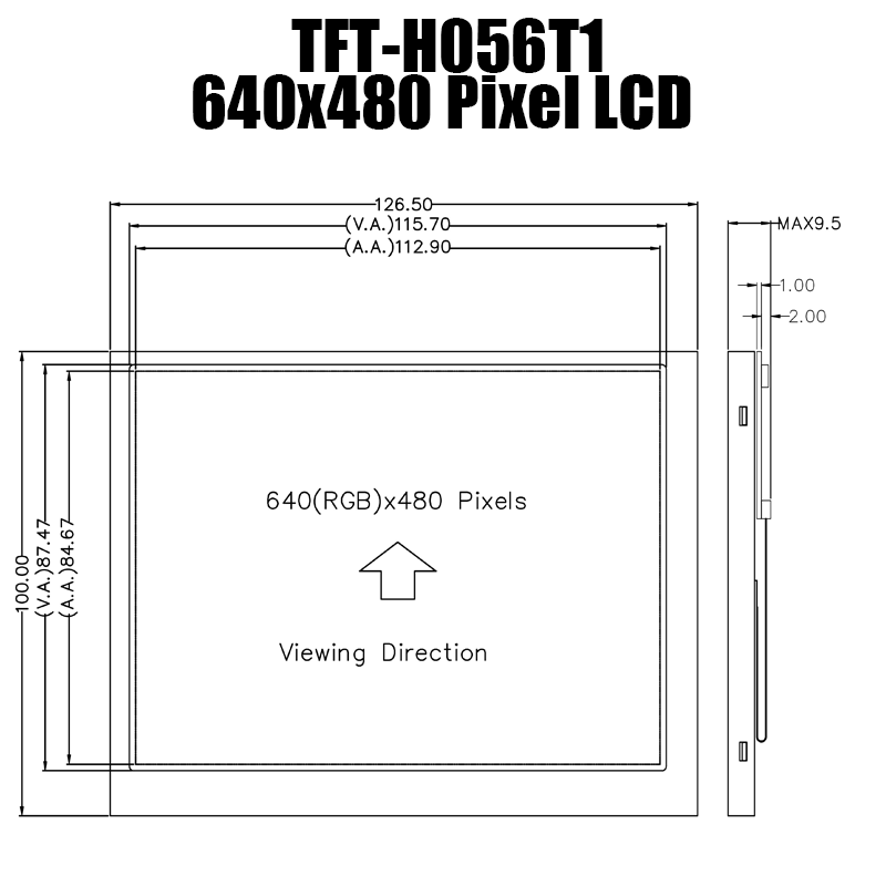 The TFT-H056A61VGTWZ3C40 is a 5.6 inch capacitive touch screen IPS TFT LCD panel with a resolution of 640x480. This display is designed for industrial control applications and can operate in temperatures ranging from -20℃ to 70℃.
