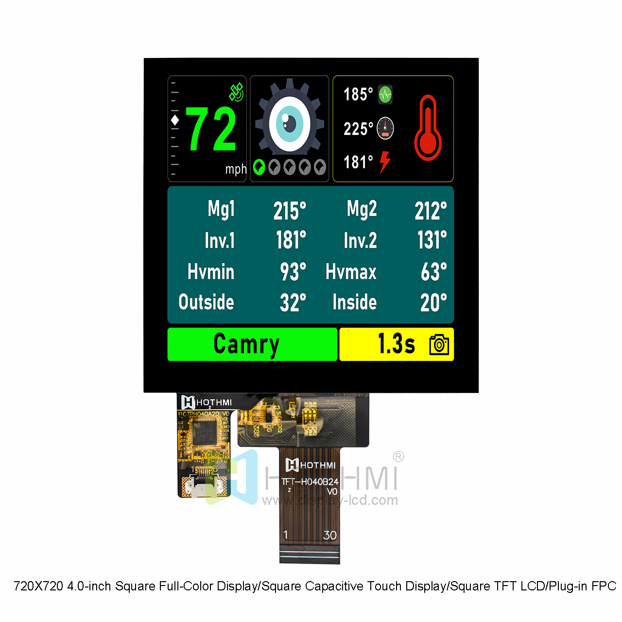 • Model : 720X720 4.0-inch Square Capacitive Touch Display/Square TFT LCD/Plug-in FPC TFT-H040B24ZKIST3C30