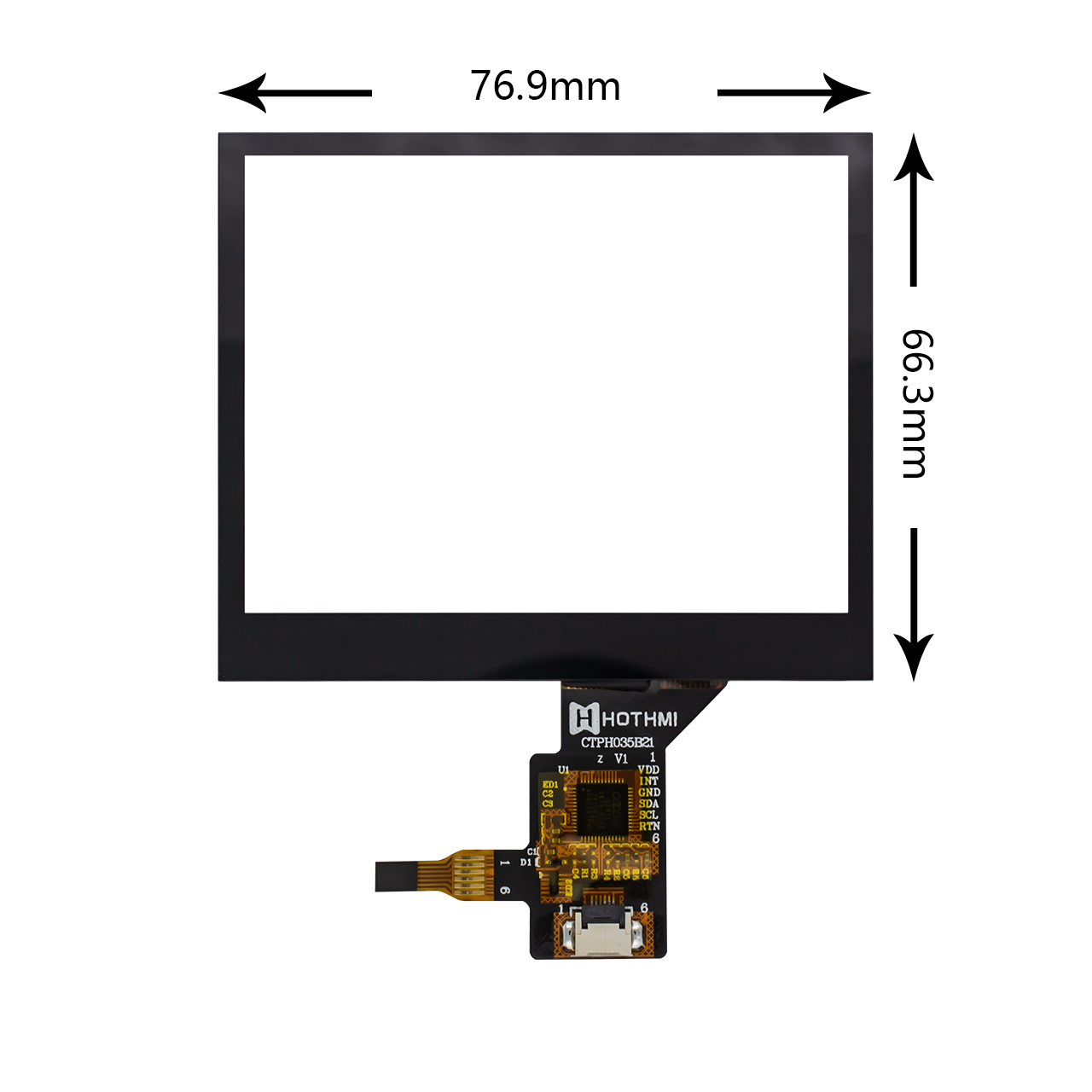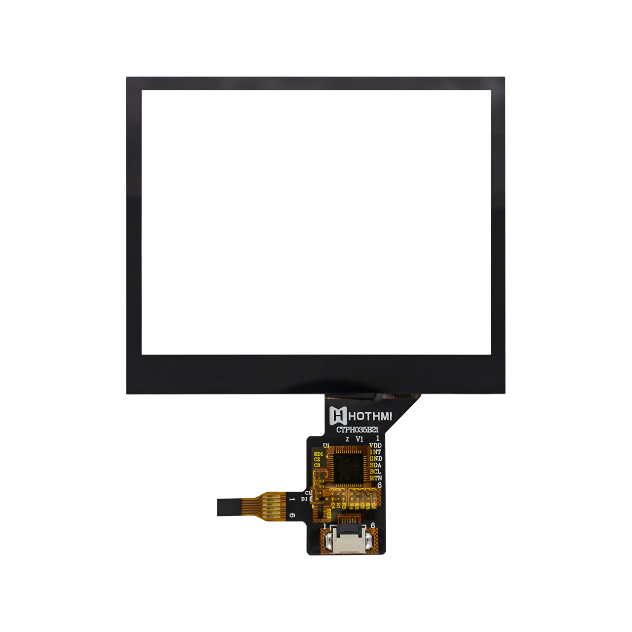 該產(chǎn)品是一款3.5英寸電容式觸摸面板,與3.5英寸的TFT LCD 顯示屏1:1比例吻合,用戶可以通過光學貼合或者框貼的方式與顯示器綁定在一起。