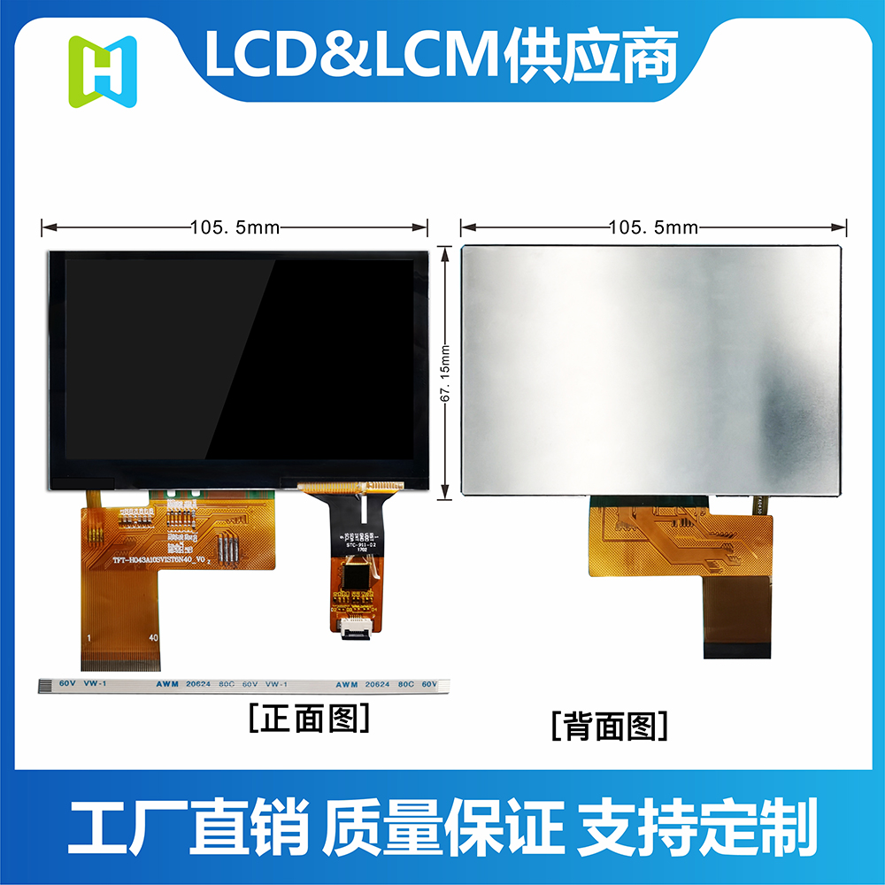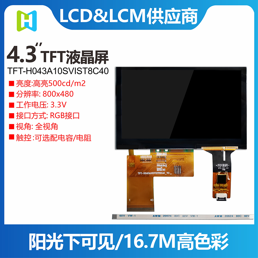 4.3寸TFT橫屏|800*480分辨率|IPS全視角|帶電容觸摸屏|TFT-H043A10SVIST5C40