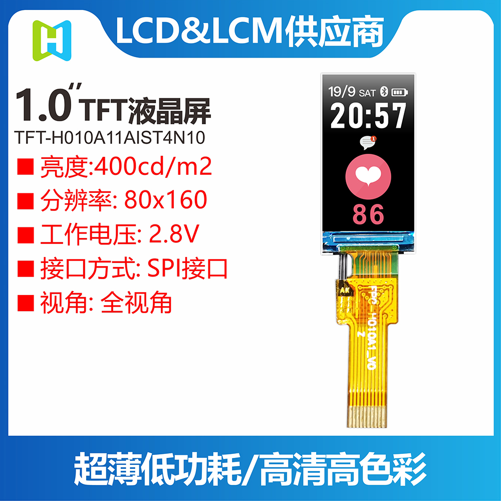 產(chǎn)品描述 TFT-H010A11AIST4N10是一款1.0英寸全彩TFT液晶顯示模組,分辨率為80x160像素,寬高比為1:2。 TFT模塊采用ST7735S驅(qū)動IC,支持SPI接口。 采用IPS面板的TFT模組具有廣視角優(yōu)勢(左80度/右80度/上80度/下80度),典型對比度為800:1,模組亮度高達(dá)400尼特( 典型值)。 模塊工作溫度范圍-20℃~+70℃,儲存溫度范圍-30℃~+80℃。