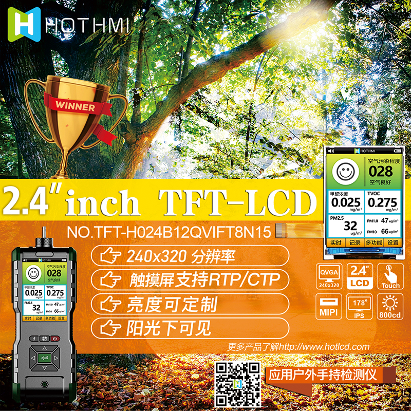 TFT-H024B12QVIFT8N15是HOTLCD研發(fā)團隊精心設(shè)計的2.4英寸TFT彩色液晶屏,240*320分辨率,高畫質(zhì),廣視角,65K/262K真彩,內(nèi)置JD9852控制器,支持MIPI接口,無需外圍電路,15PIN插件FPC可接主板(可選連接器),單電源DC 3.2V供電。 該TFT模組可配備觸摸屏,所有材料均符合RoHS環(huán)保要求標準。 廣泛應用于各種儀表、智能設(shè)備、分析儀器、手持儀表、行車記錄儀等:8051、PIC、AVR、ARDUINO、ARM、樹莓派等。