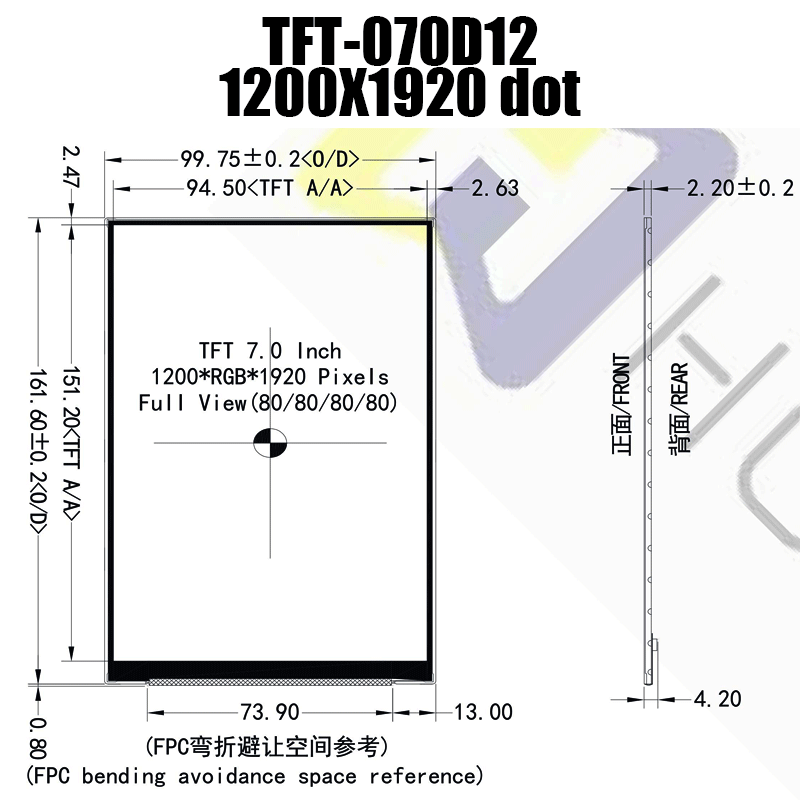 這款 7.0 英寸 TFT LCD 顯示器具有 1200x1920 分辨率的屏幕,采用 IPS 技術,色彩還原更好,圖像一致性更好,任何角度的光學特性都更好。 為了提供額外保護,這款 24 位真彩色 TFT 。 這款 7.0" 顯示器符合 RoHS 標準,采用 MIPI-4L 接口,不包含觸摸屏。這款 7.0" IPS 顯示器采用相同的機械尺寸和引出線設計,包括與 TN 顯示器相同的 HX8279 驅動器 IC,使其成為 TN 型號的兼容替換選項。