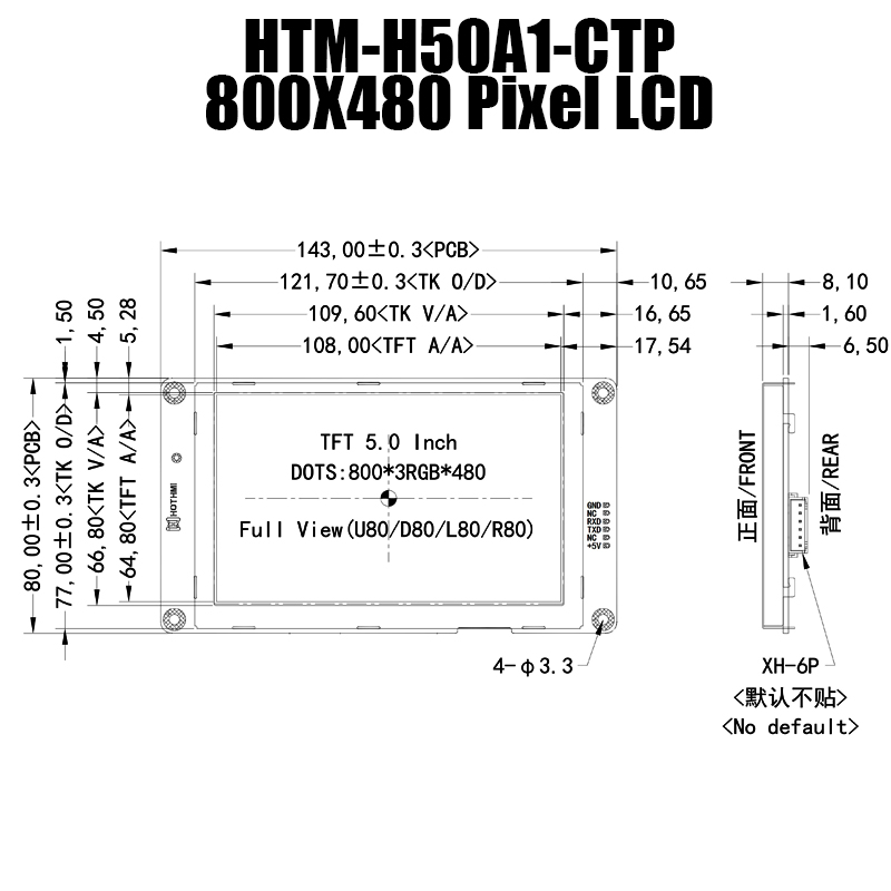 彩色TFT顯示屏尺寸:5英寸(對(duì)角線)