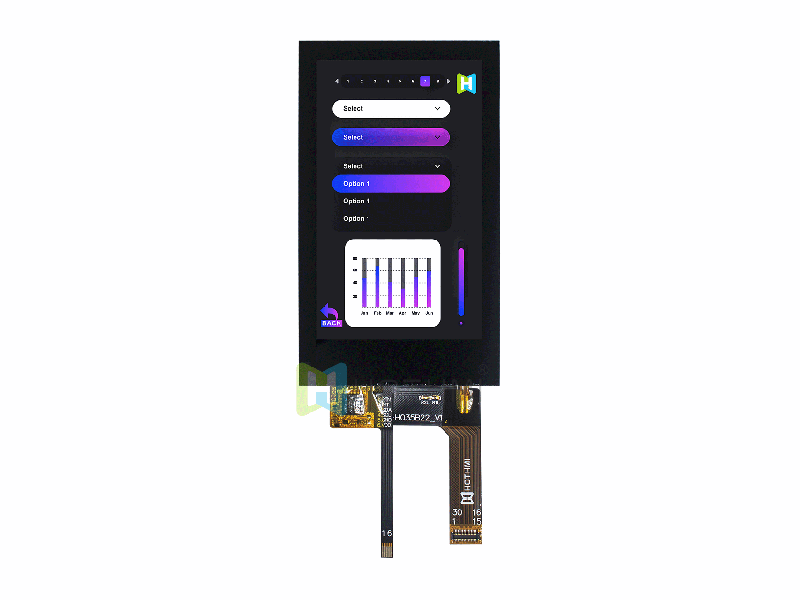 | 3.5 英寸320x480全彩IPS顯示屏/帶電容觸摸TFT LCD/FPC/多種接口兼容/ST7796S控制器 TFT-H035A3HVIST4C50 | TFT顯示屏 | 320x480 |