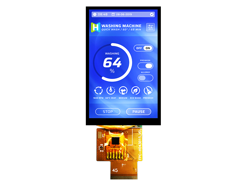 | 4.3寸 TFT LCD 顯示模塊 480X800分辨率 TFT LCD 顯示器制造商用于儀器儀表 H043B15WVIST4N45 | TFT豎屏 | 480x800 |