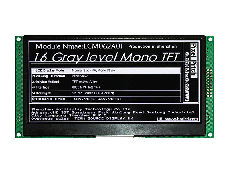 | 6.2寸單色TFT/640*320分辨率/高對(duì)比度 | TFT單色 | 640x320 |