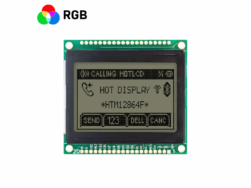 | 3.2寸128x64圖形點陣模塊/紅綠藍(lán)背光/中文字庫/FSTN全透性LCD/Arduino HTM12864Z-35S-A5P | 圖形液晶模組 | 128x64 |