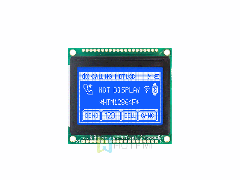 | 3 英寸128x64 液晶顯示屏|圖形點陣顯示|兼容KS0108|灰色背景上的藍色文本|Arduino HTM12864D-11W-A5P | 圖形液晶模組 | 128x64 |