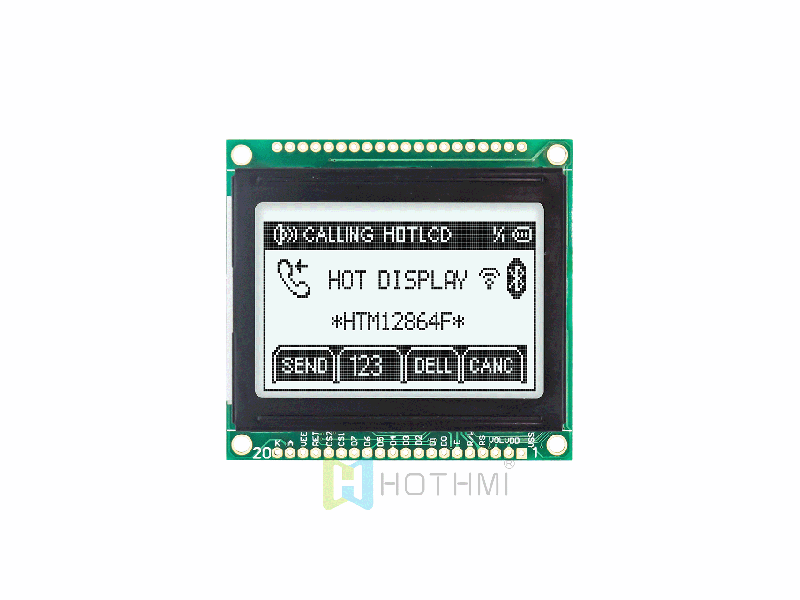 | 2.0英寸圖形點陣模塊/128x64分辨率/黑底白字/KS108或者AIP31108控制芯片/SPI HTM12864F-41W-A5P | 圖形液晶模組 | 128x64 |