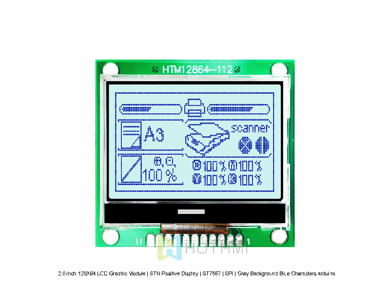 | 2.0 英寸 128X64 LCD 圖形液晶模塊 | STN 正顯 | ST7567 | SPI | 灰底藍(lán)字 arduino HTM12864-112-11W-A5P | 圖形液晶模組 | 128x64 |
