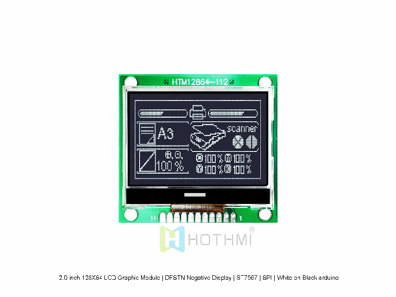 | 2.0 英寸128X64 LCD 圖形液晶模塊 | DFSTN 負(fù)顯 | ST7567 | SPI | 黑底白字 arduino HTM12864-112-41W-A5P | 圖形液晶模組 | 128x64 |