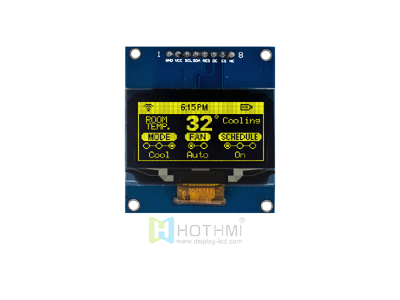 | 1.54英寸黃色128x64 OLED顯示屏/Arduino/SPI接口/8針連接器/圖形點陣OLED模組 HTM-OLED1.54-SPI-Y | OLED 模組 | 128x64 |
